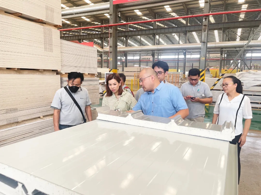 9月5日,泰國(guó)Onvalla集團(tuán)一行來(lái)訪寶潤(rùn)達(dá)洽談合作光伏屋面板、聚氨酯墻面板等項(xiàng)目。